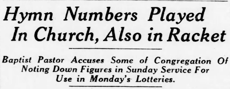 That Sunday in 1937, Pankey ascended the pulpit and railed about bookies siphoning change from church collection plates. Pankey said that collections were down about 50 percent “since the advent of the numbers lotteries.”