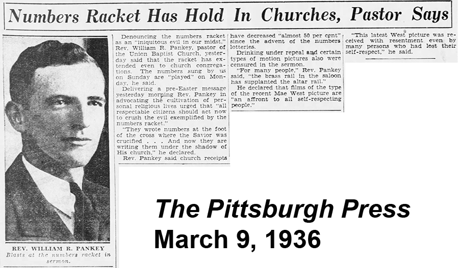 Perhaps the biggest headline grabber was Pankey’s accusation that members of his flock were using services as a source hunch numbers to play. “Hymn numbers used in the Sunday services,” wrote the Post-Gazette, “are played on Monday.”