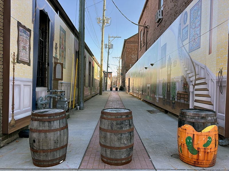 In 2024, a Covington art collective transformed Tobacco Alley between Madison Street and Electric Alley into an immersive, three-dimensional artwork. The alley features traditional murals along with cabinet doors that open to reveal bookshelves and the interior domestic spaces in what creators dubbed the “Wenzel House.”